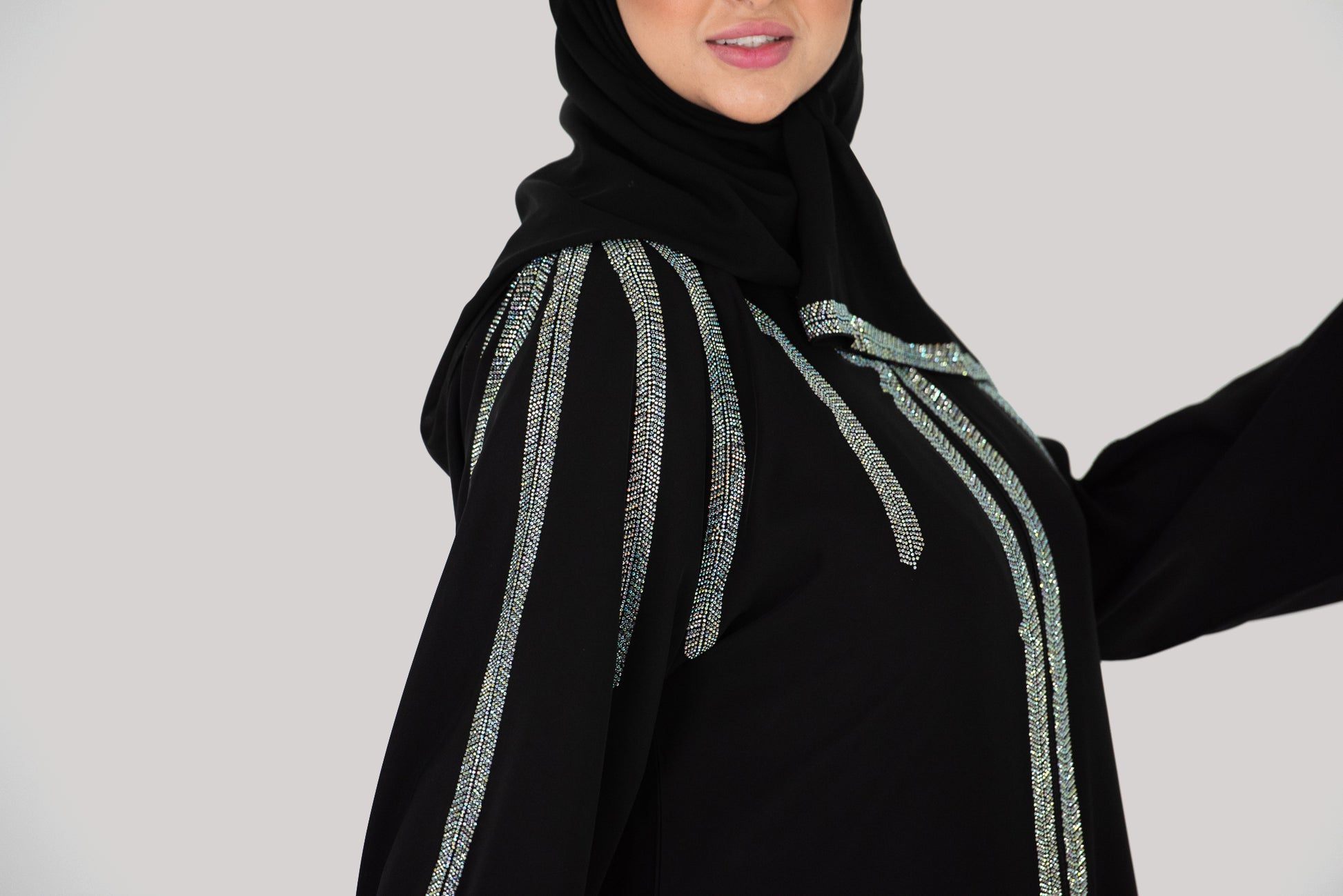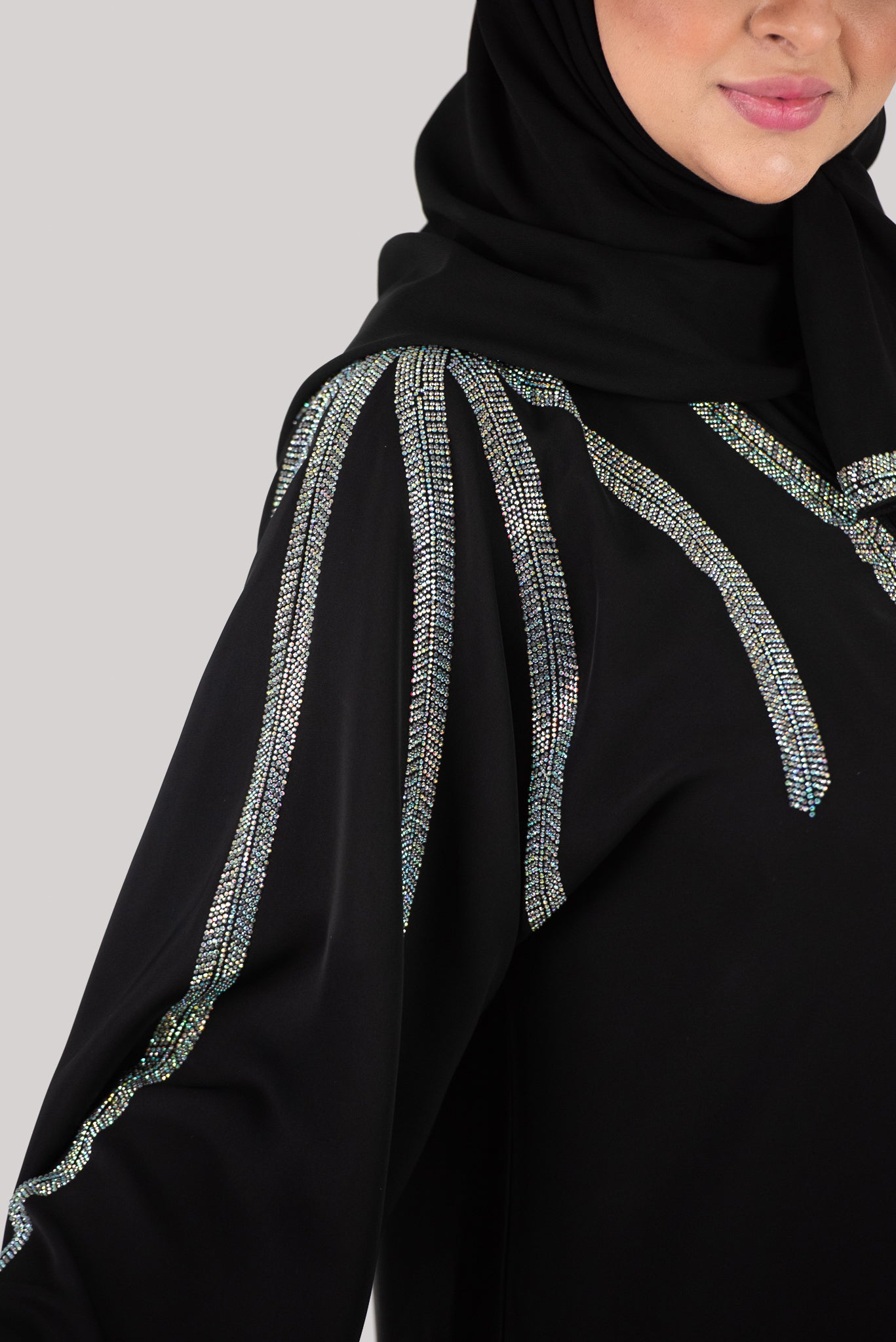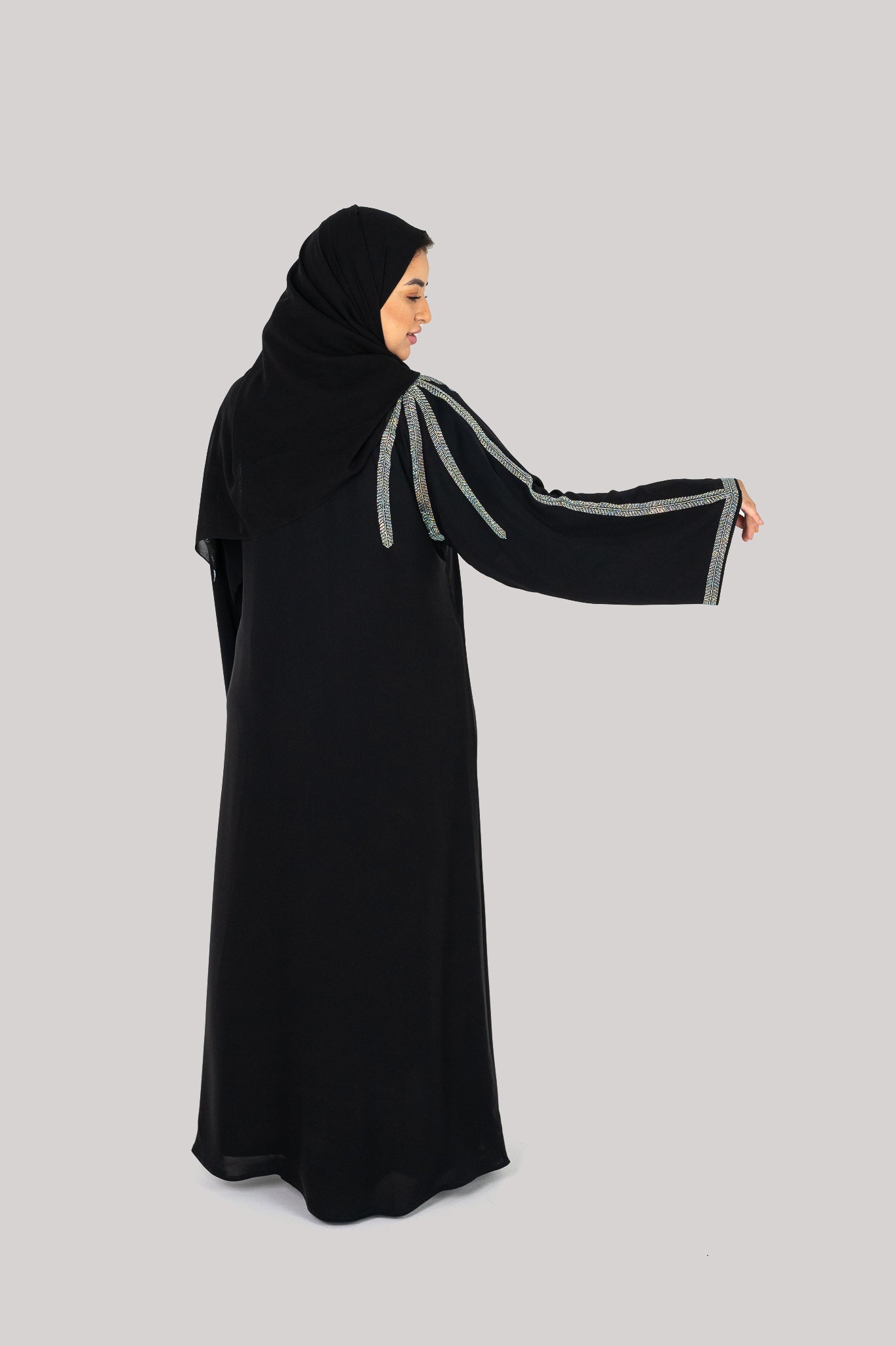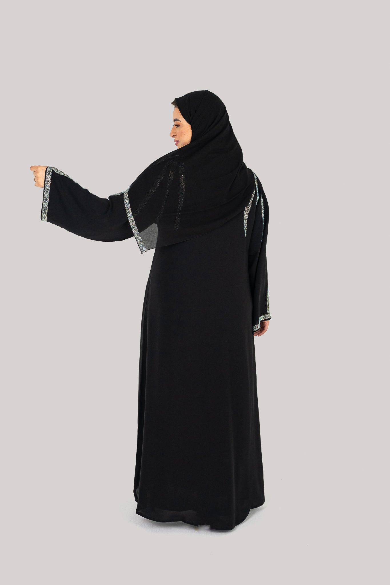 This unique stone work Abaya is a comfortable everyday modest fashion piece.
