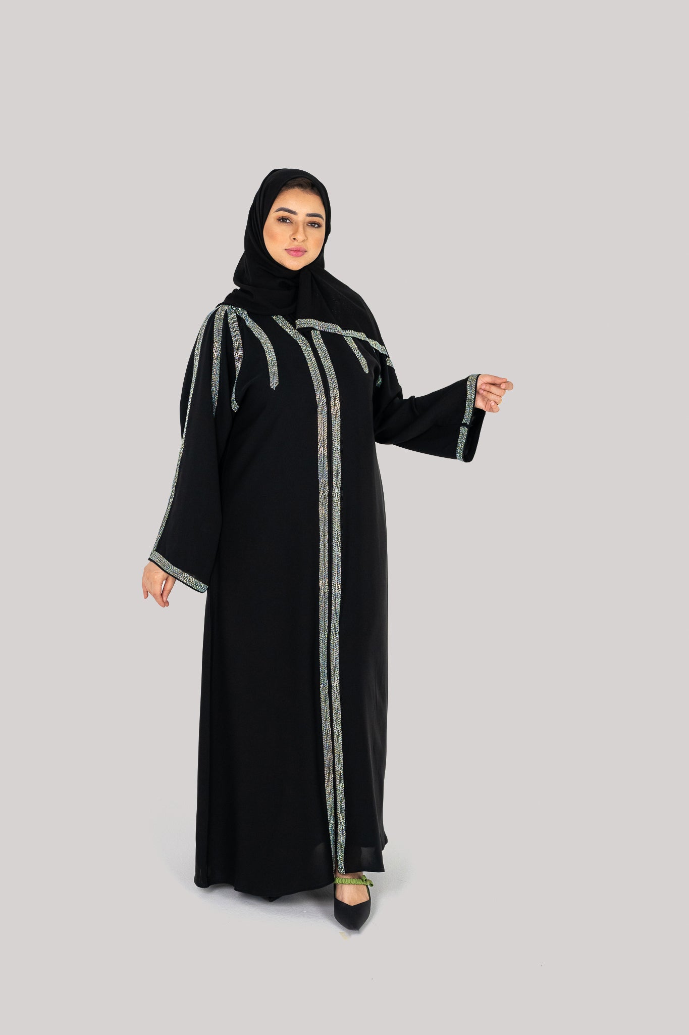 - Abaya style is closed front as shown in the picture.