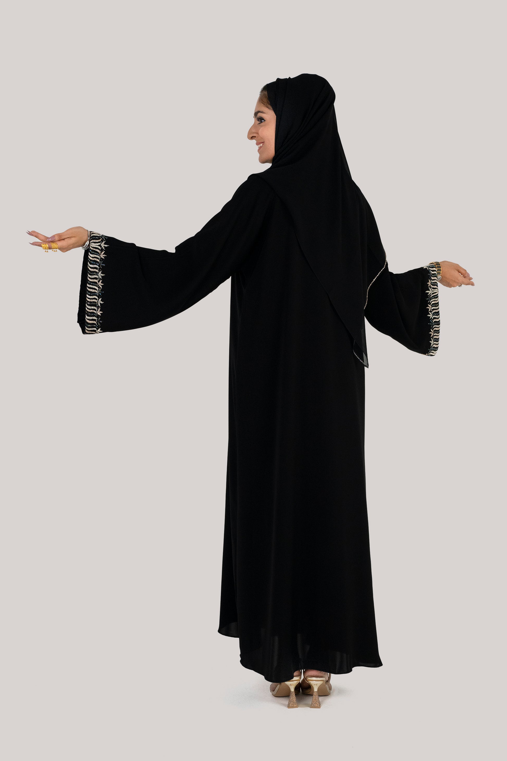 Introducing the premium handmade abaya with japan stone work. This minimalist Abaya is perfect for an all day wear and is a must have in your wardrobe.