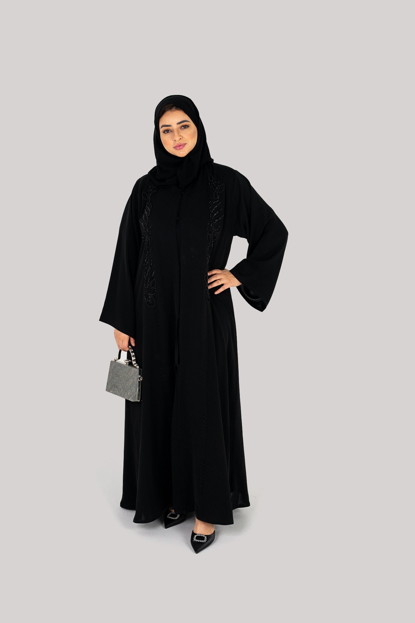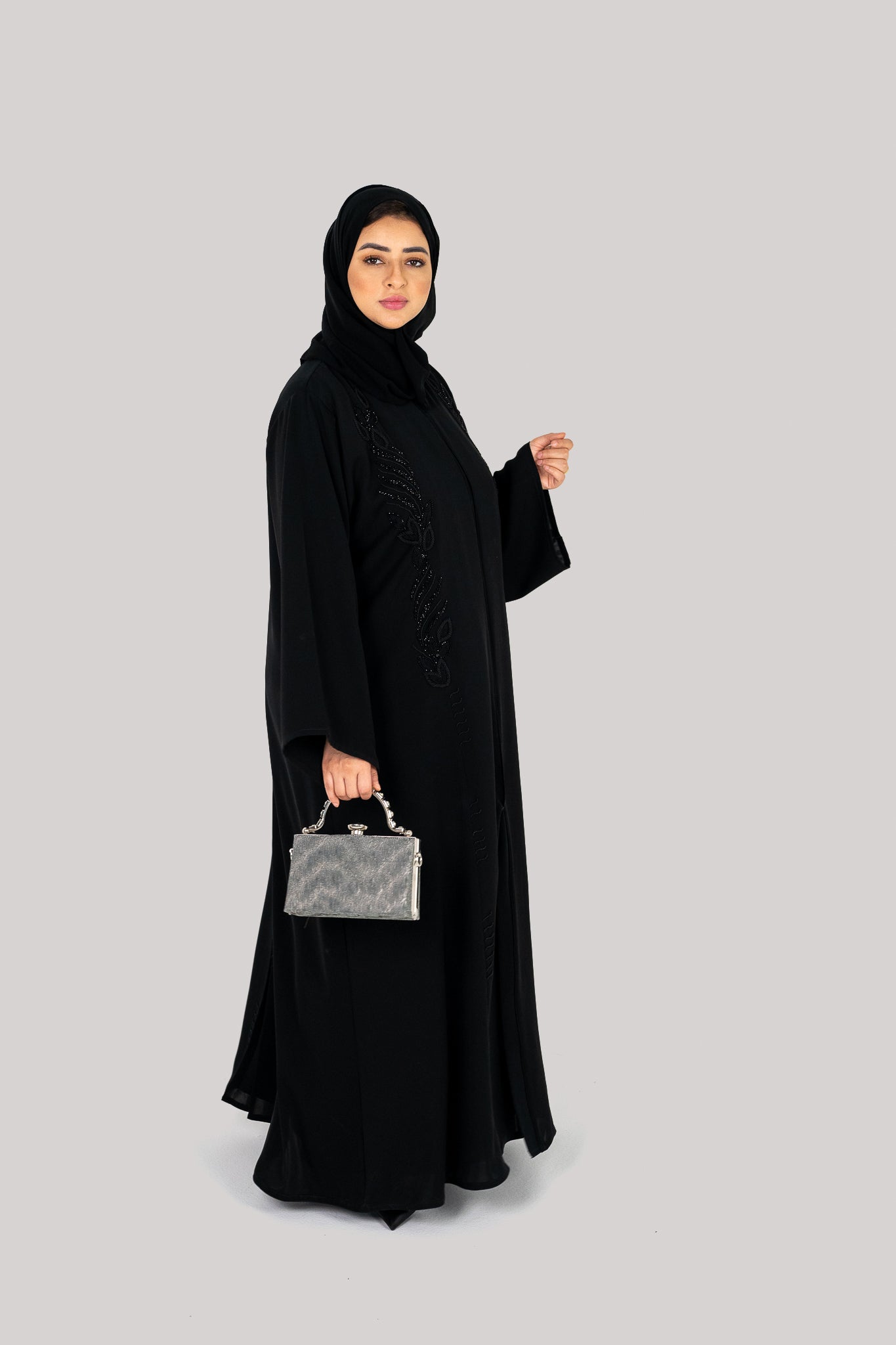 - Abaya style is closed front as shown in the picture.