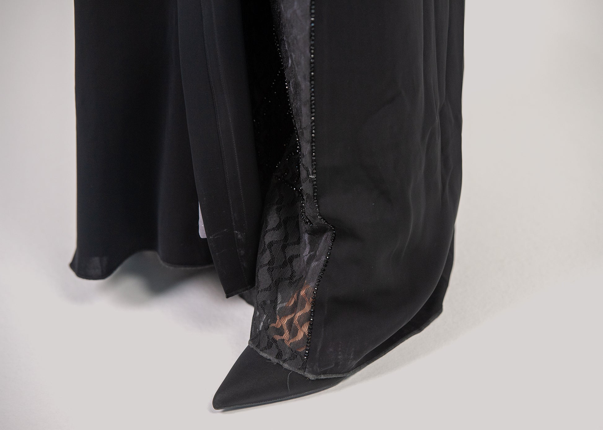 Introducing our trendy semi transparent abaya with handmade stone work. Its perfect for day and evening wear.
