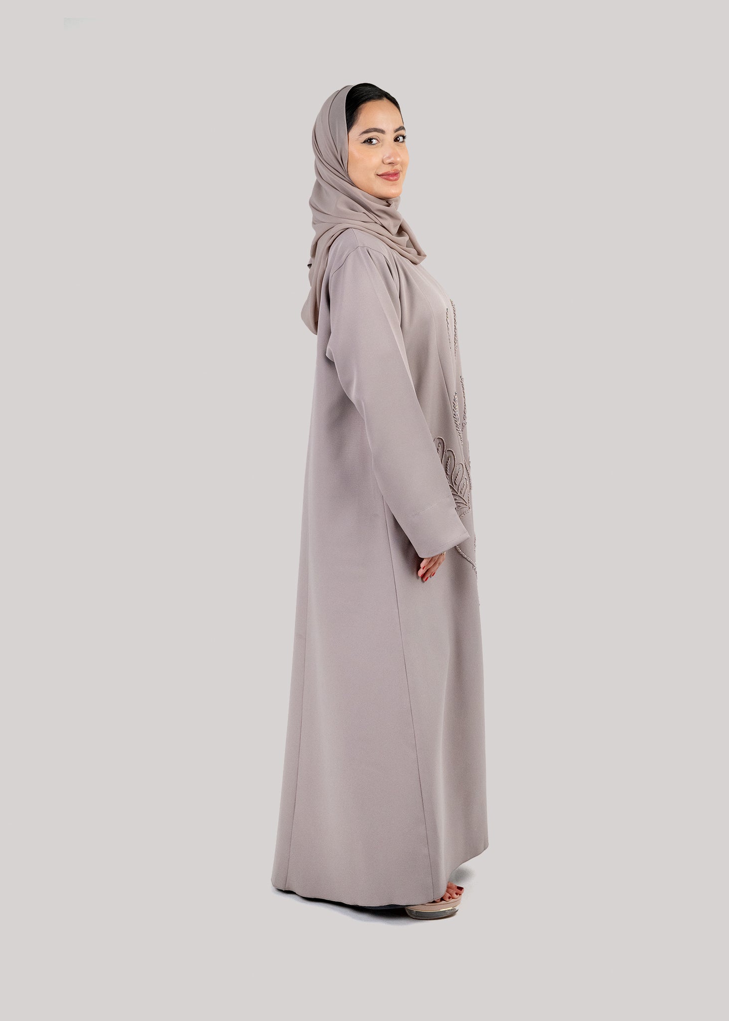 This stunning handmade abaya combines traditional style with elegant handwork. This luxurious handmade piece will be your favorite go to abaya for any occassion.