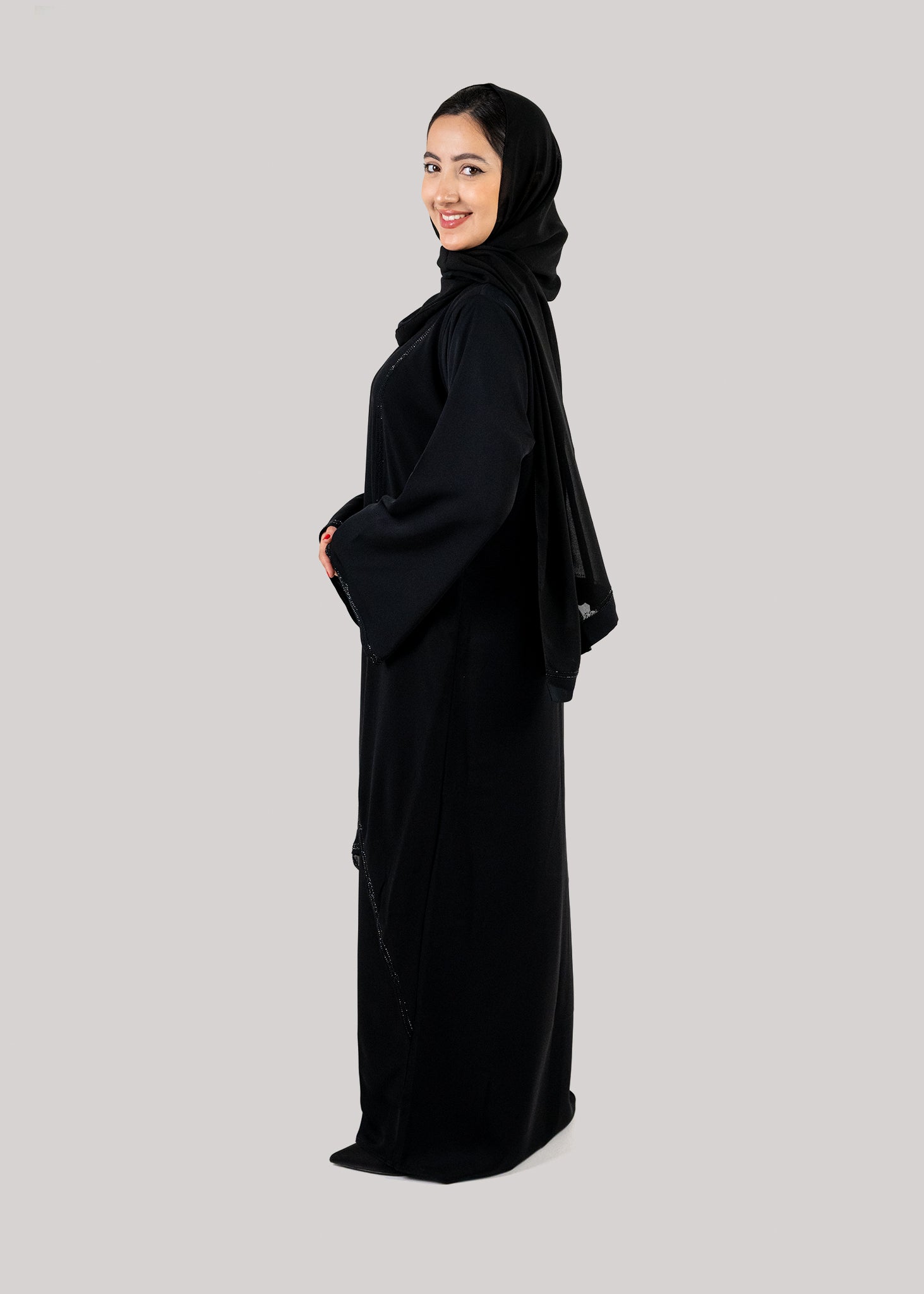 - Abaya style is closed front as shown in the picture.