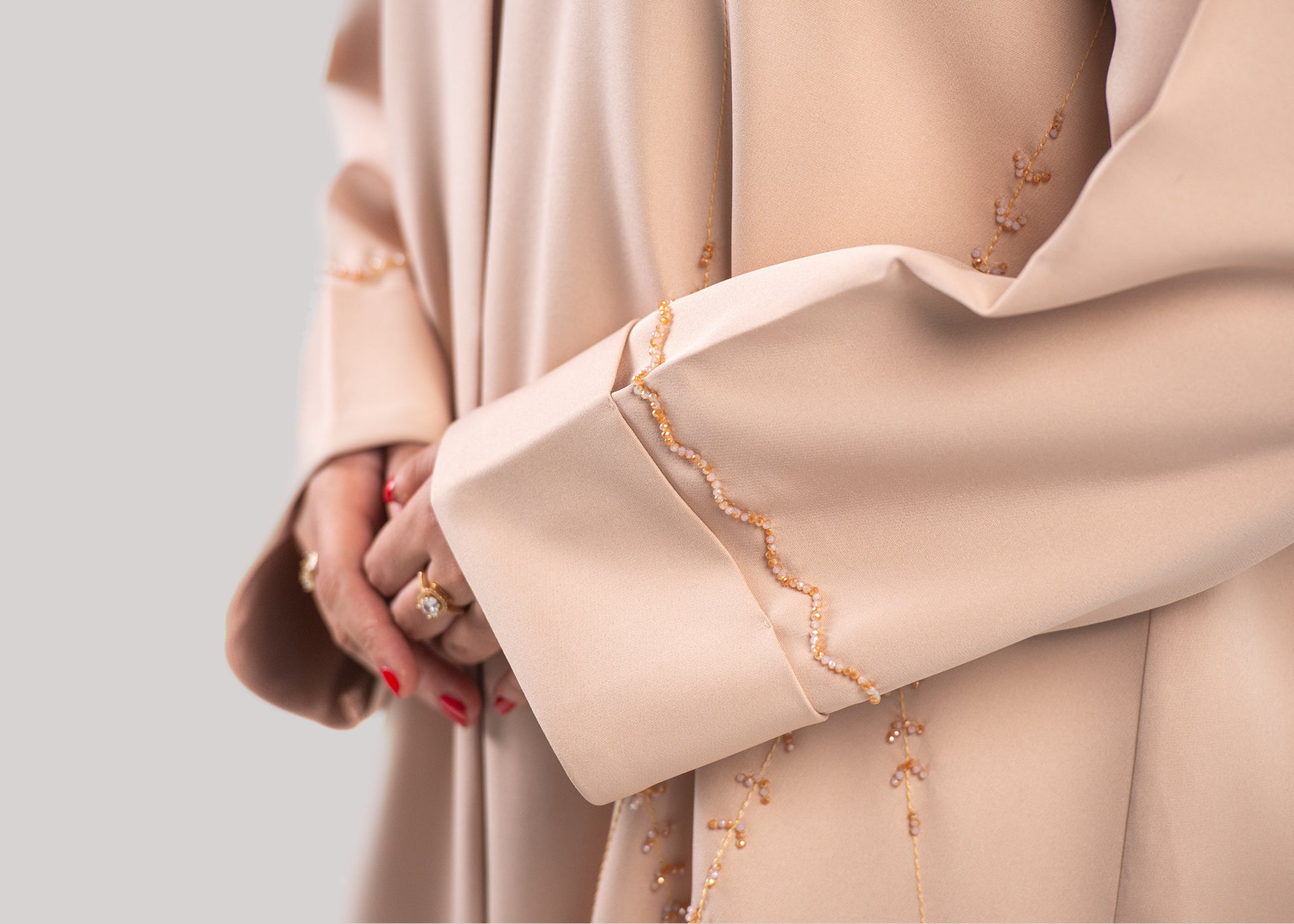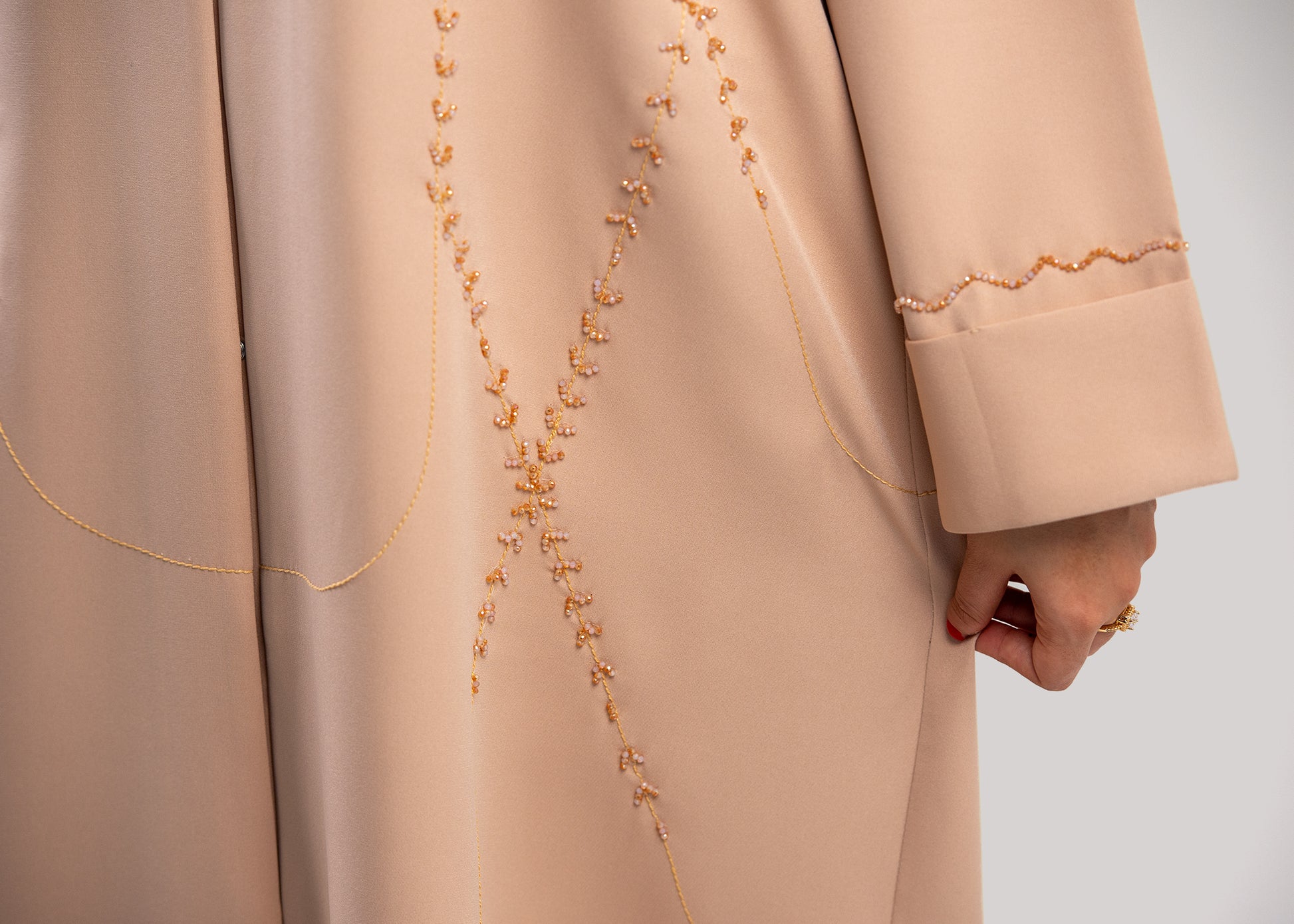This stunning handmade abaya combines traditional style with elegant handwork. This luxurious handmade piece will be your favorite go to abaya for any occassion.