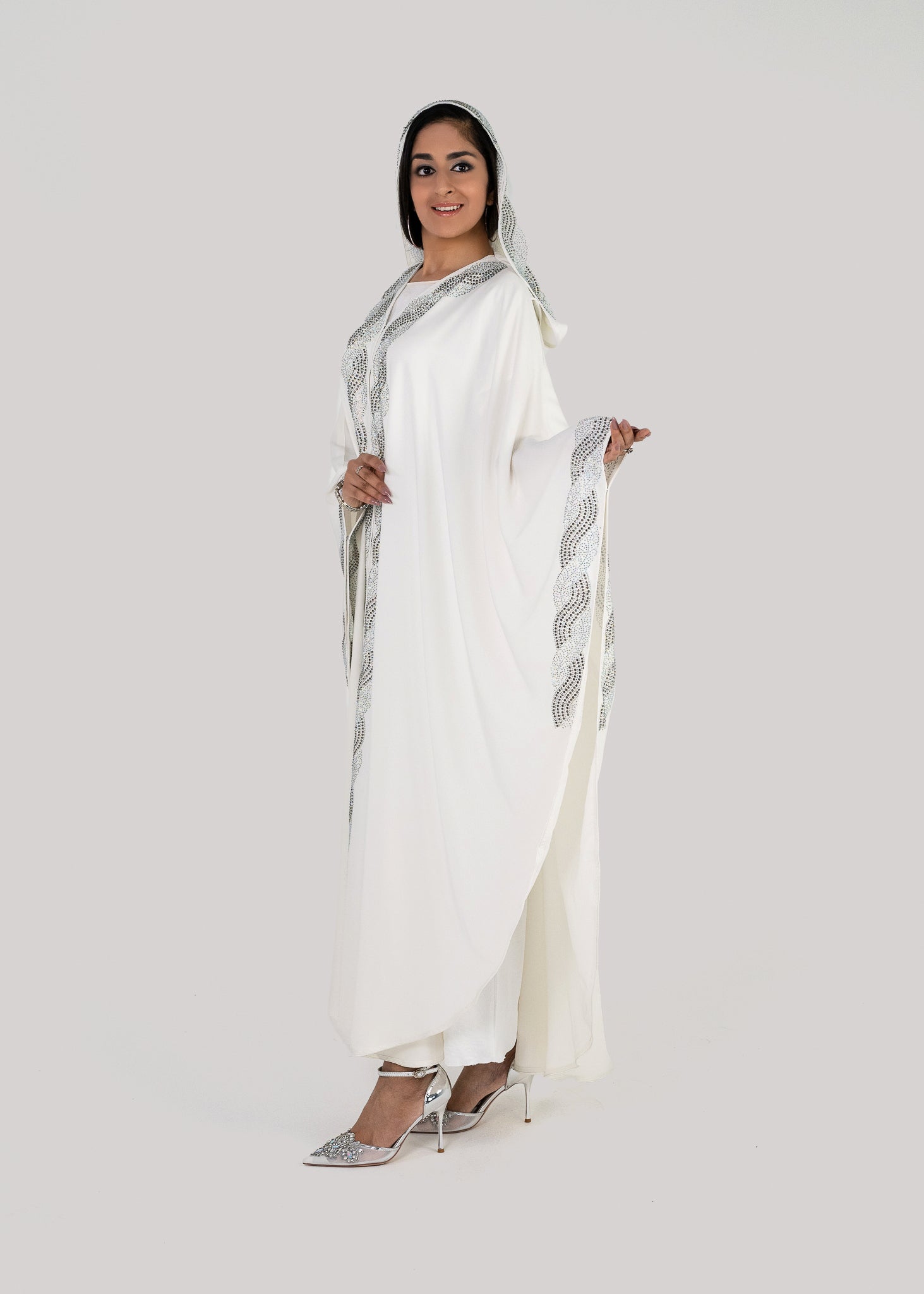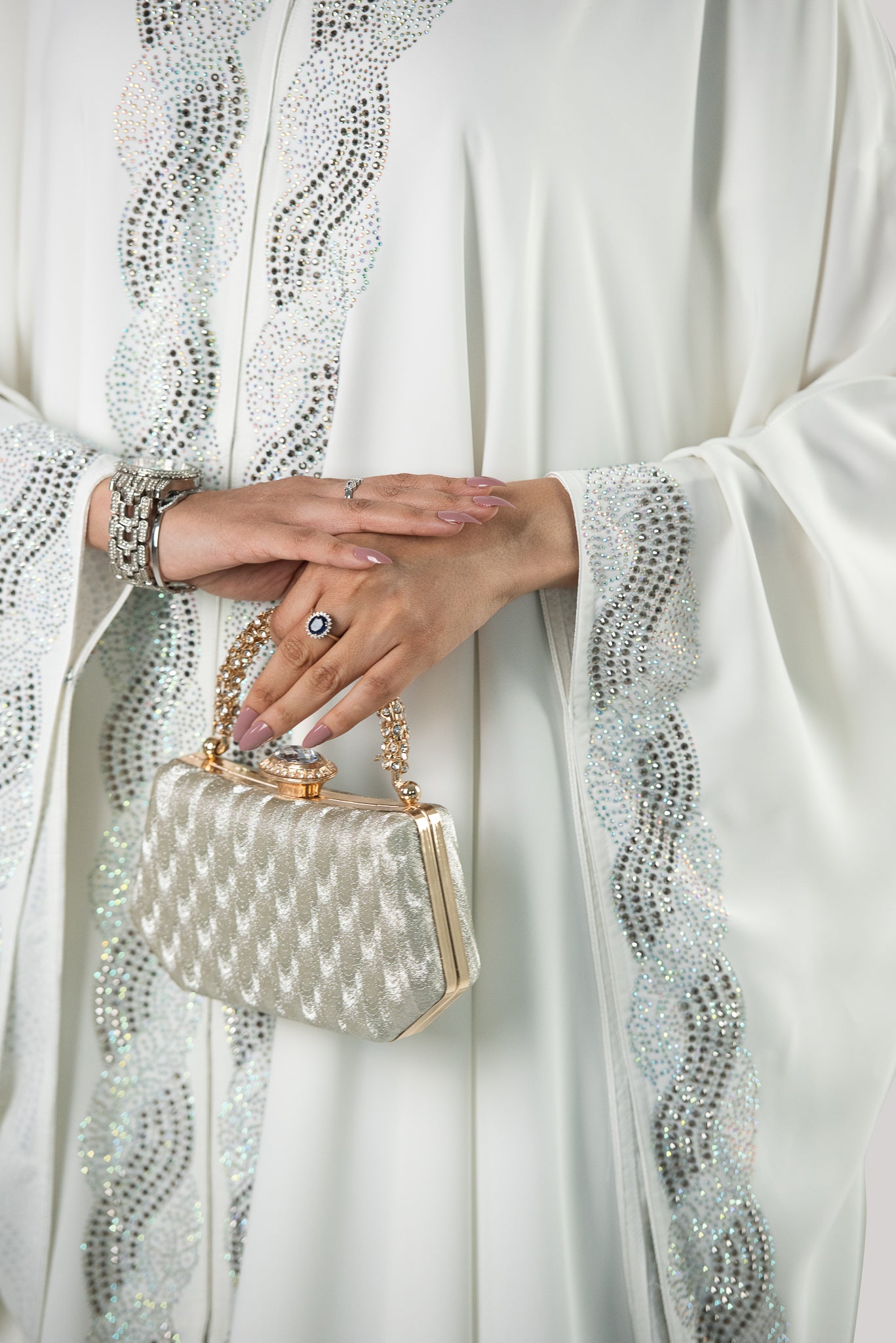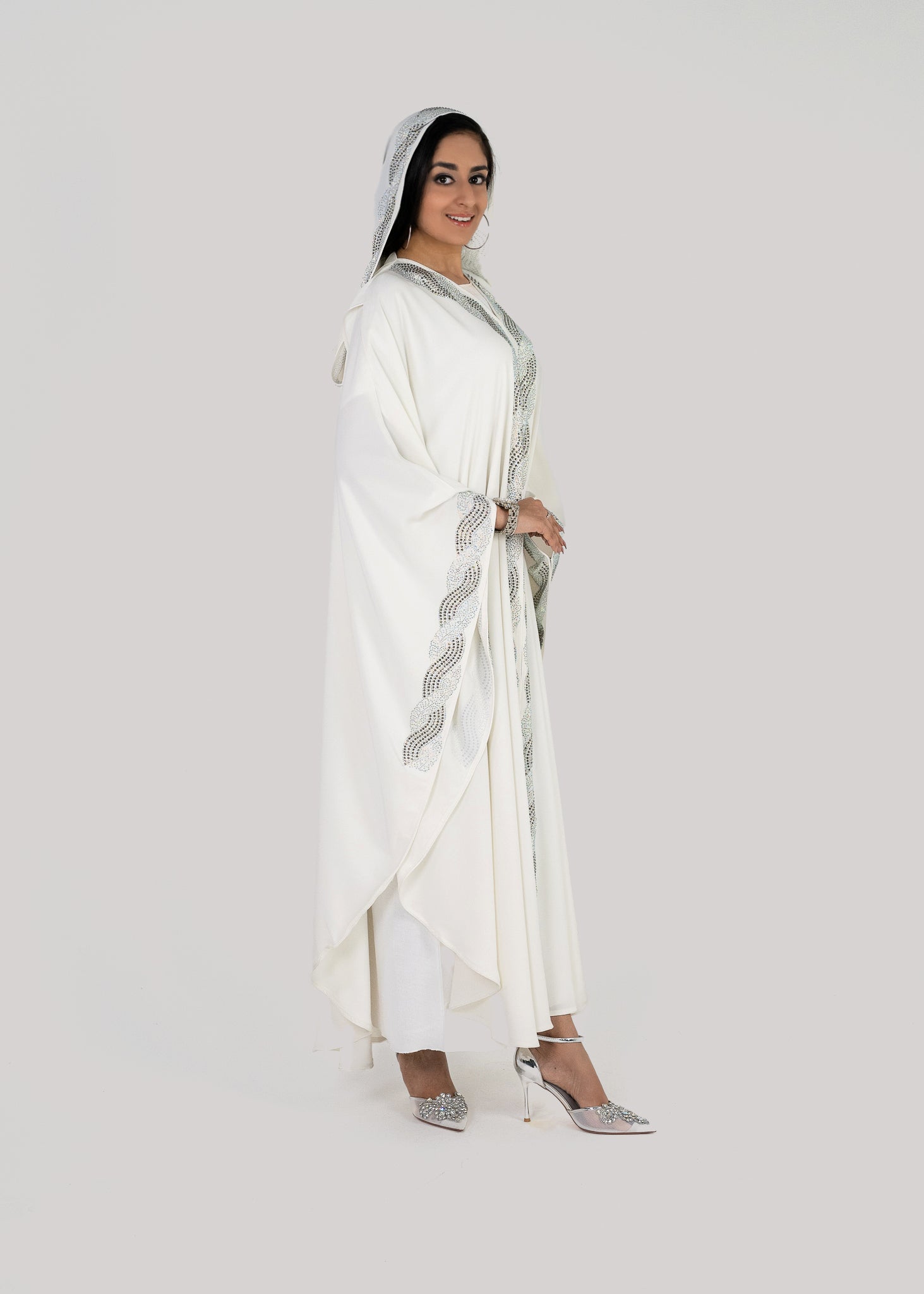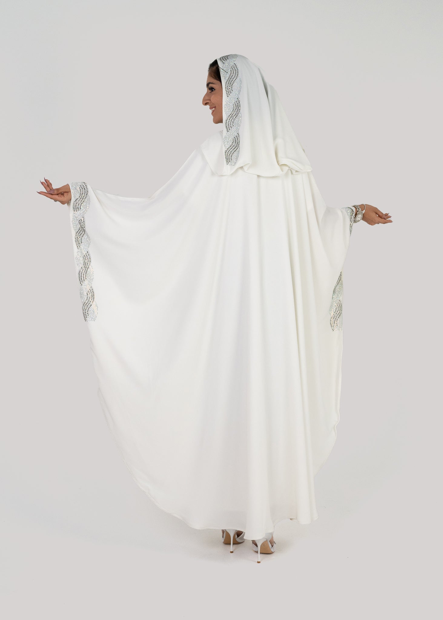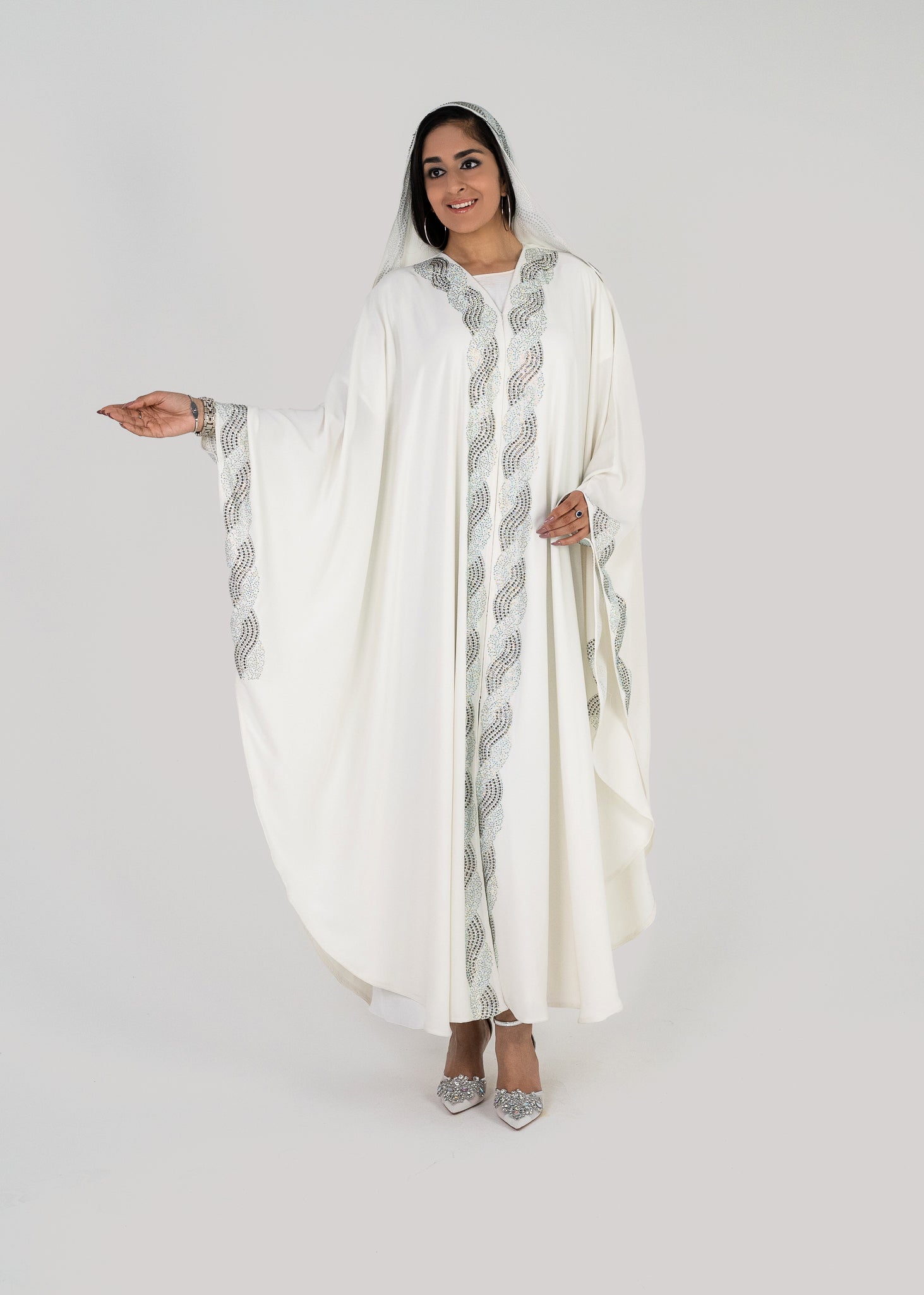 Indulge in the grandeur of our premium party/wedding open farasha with stone work. This abaya will surely grab a lot of attention, perfect for your special occassion.