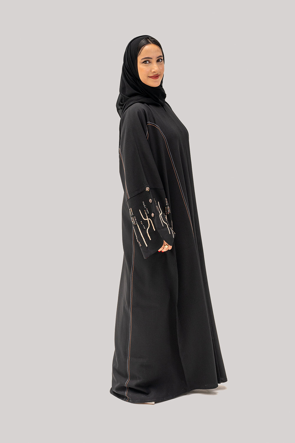 - Abaya style is closed front as shown in the picture.