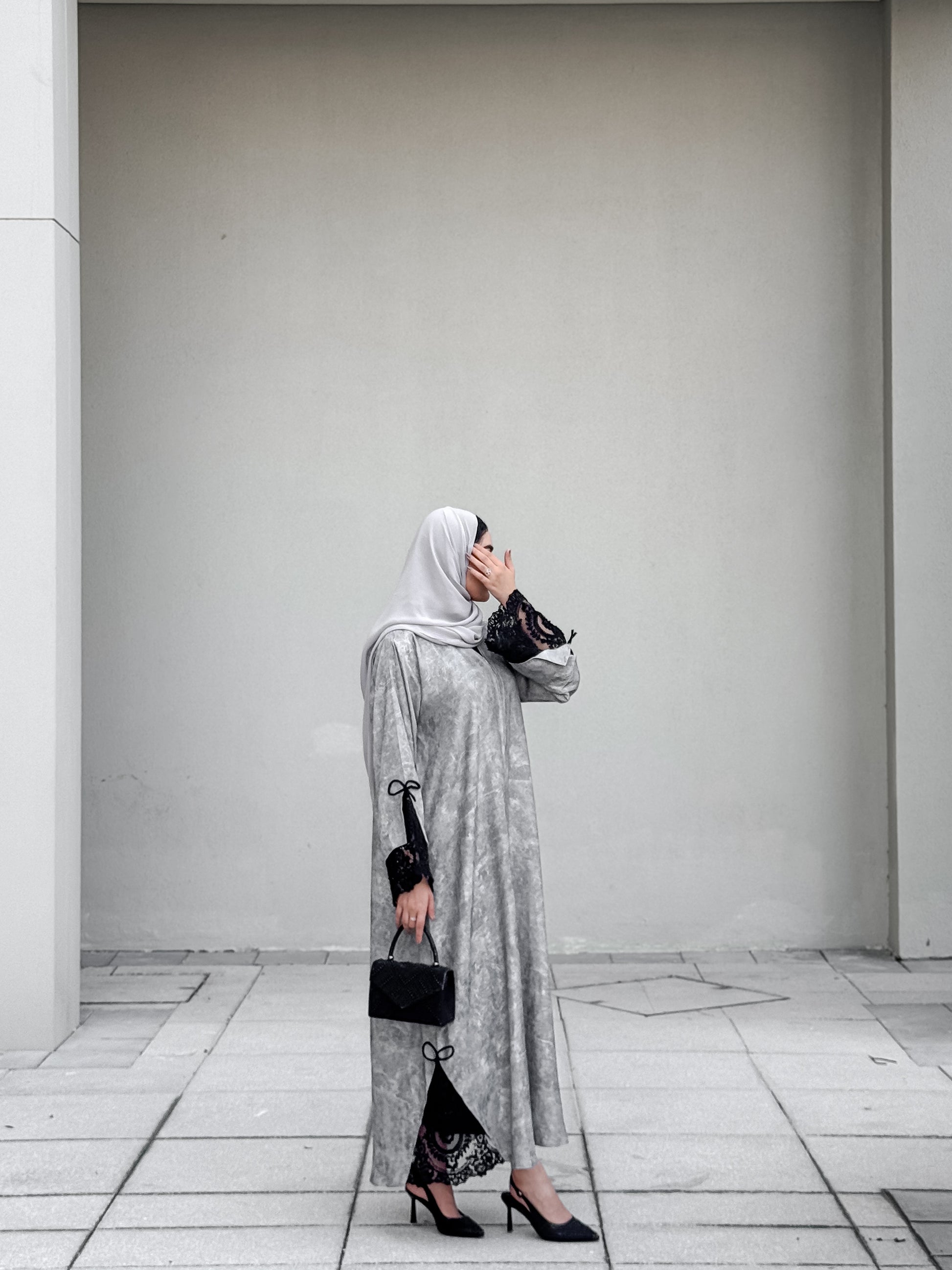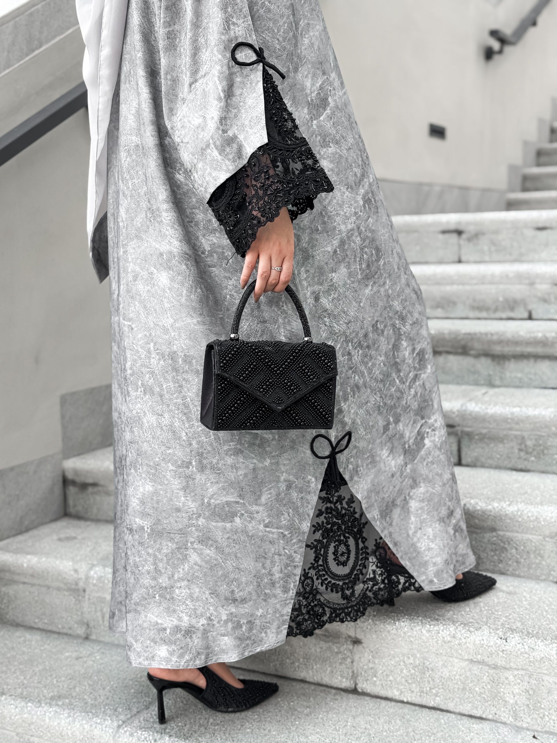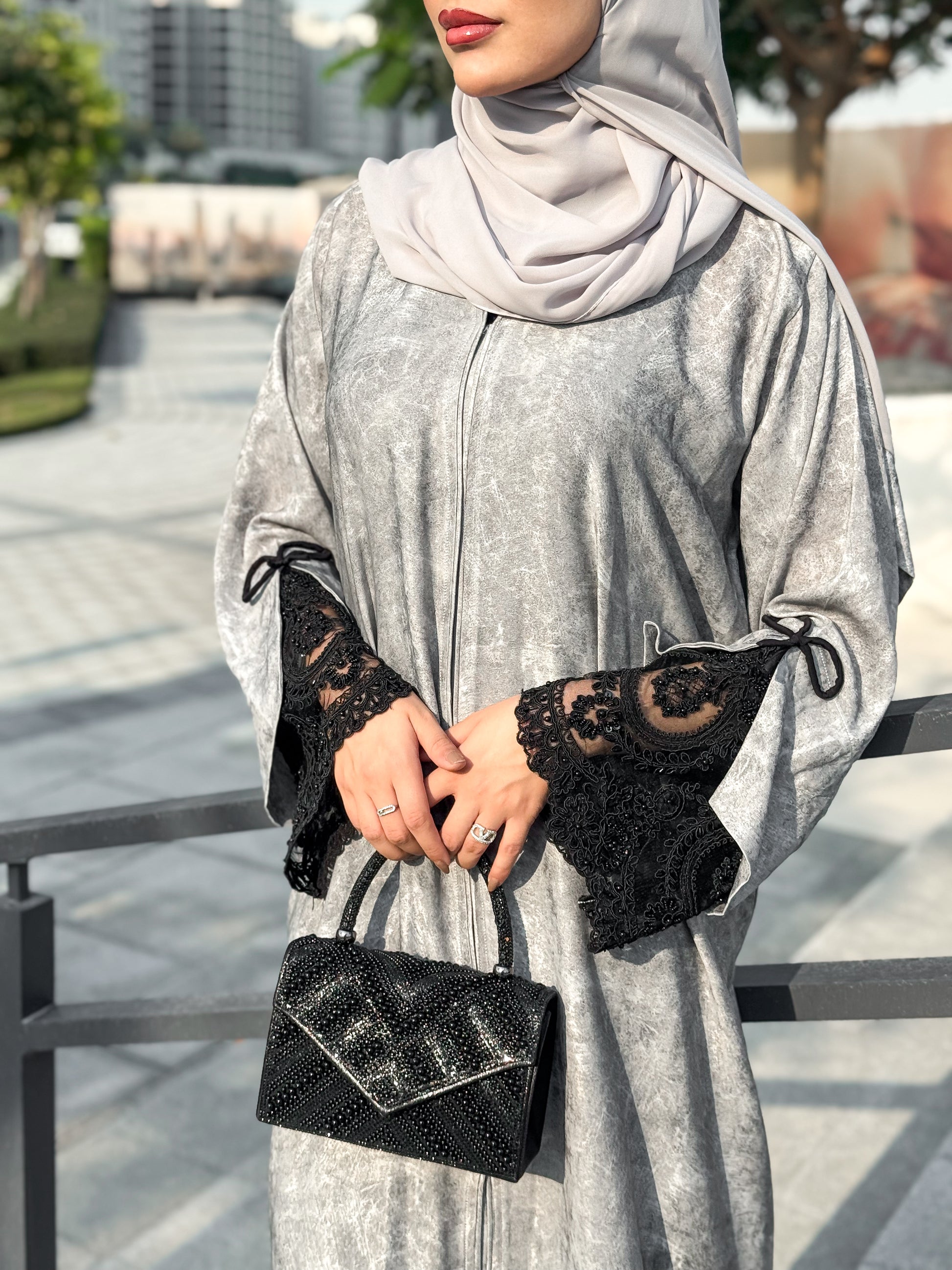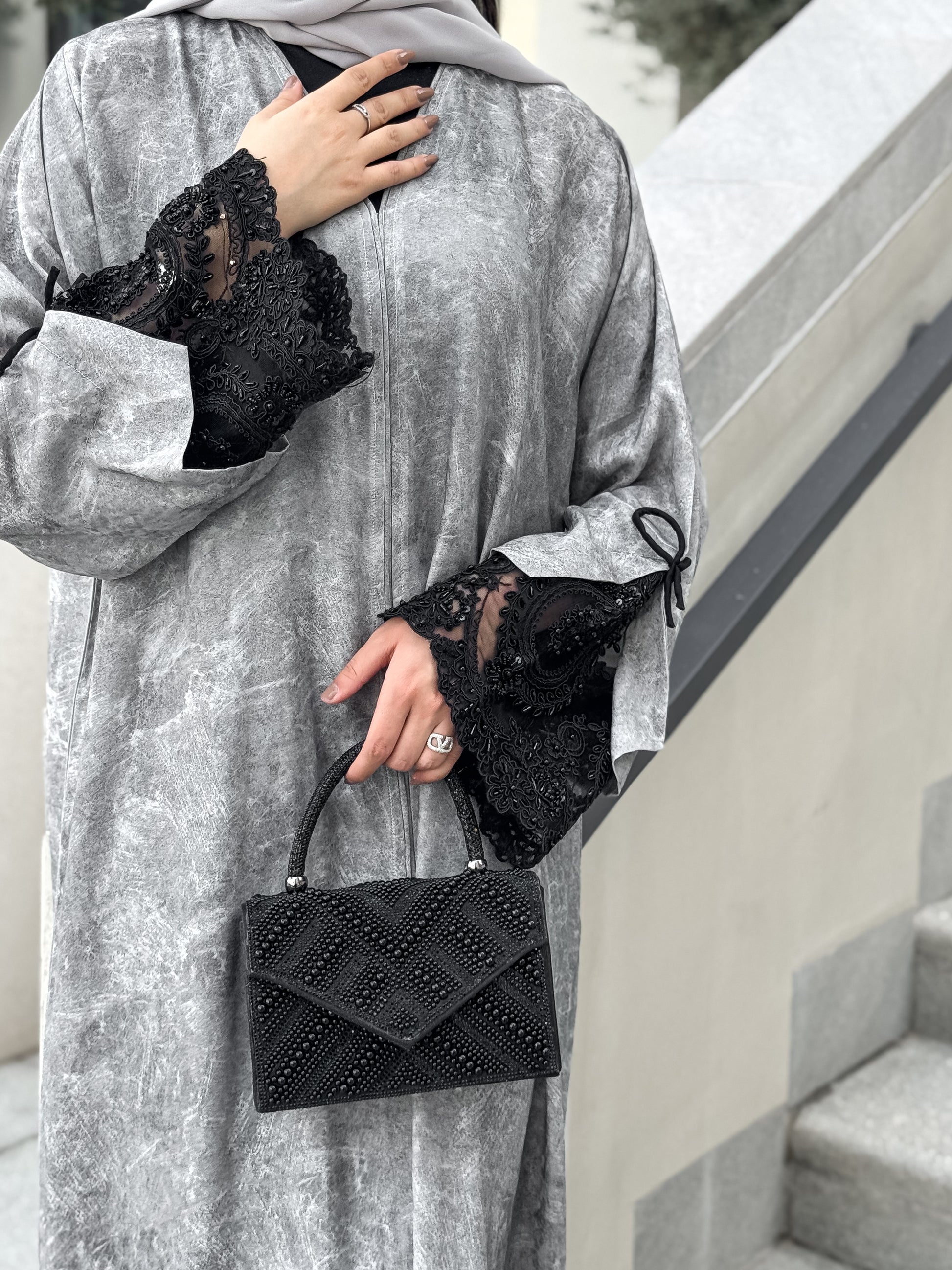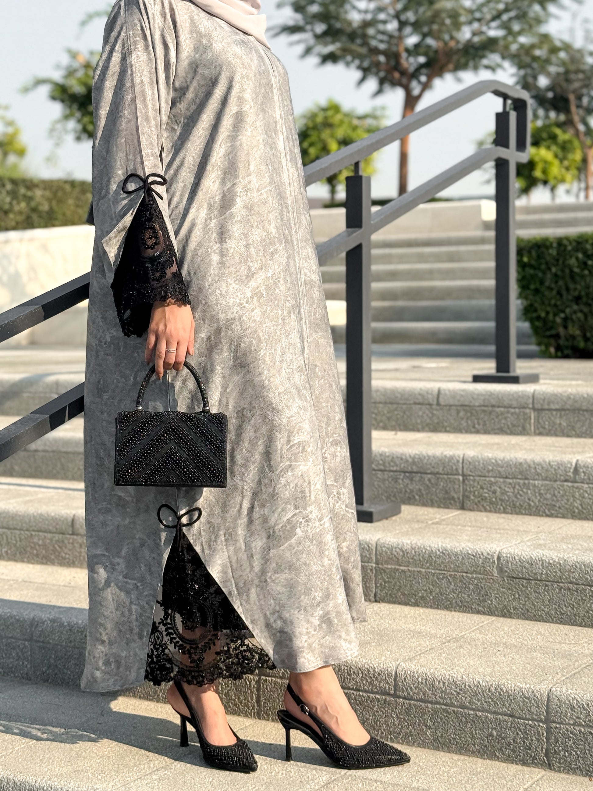Experience elegance and sophistication with our handmade net abaya with embroidery work. The bow on the sleeves and the sides add charm to its elegant look and is a comfortable summer friendly all day wear.